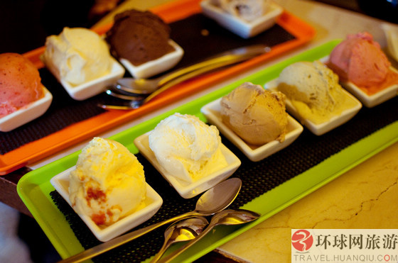 在罗马一些新潮的gelato连锁店,为适应游客需要已经做得很国际化,各种不同品种的gelato前,有英文标识,还会放置水果实物表示不同味道。但在百年老店Giolitti,这些都没有,只有让游客两眼一抹黑的意大利文!整个店堂也甚少修饰,透出一股大食堂的劲儿;他家卖法也很食堂:先在外间收银台交钱,拿小票到里间换雪糕———分量给得出乎意外的慷慨:2欧(折合人民币不到20元)一个甜筒,可以选三种口味,三个大球之上,还可以再加上一勺新鲜忌廉(并非罗马的雪糕店都是这么个卖法,一些新潮连锁小店,不仅味道远远比不上Giolitti,份量也只有这个的六七成,只能选两个口味,价格却贵一成)。