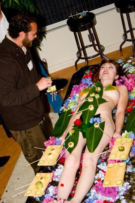每逢食客点用“女体盛”上菜时,“女体盛”经过严格的净身程序后,赤裸着身体在客人用餐的房间中间躺下,摆好固定姿势。