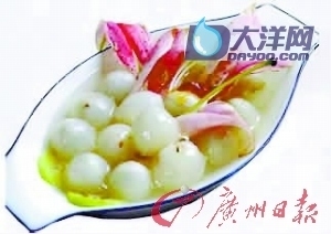 ●法式汤圆用山药儿泥、番茄酱、火腿末、奶酪、白糖等剁成肉馅丸,再用糯米粉与土豆泥混匀包上馅丸,煮熟后晾干,煎炸后即食。