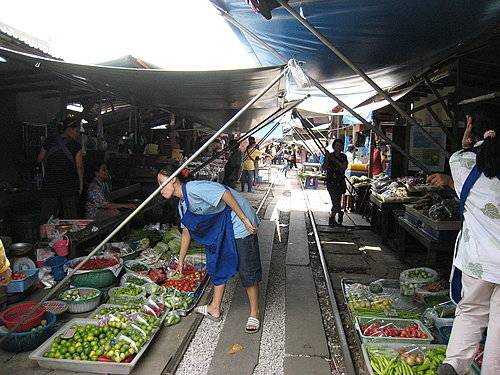 火车每穿过一次,摊主们就要收起一次摊位,每天如此往复八次。报道还称,这并非是孤例,每天在泰国的农村中心区和一些城市贫民窟都上演着这样的场景。