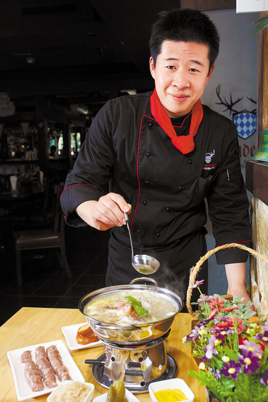话说德国的猪手、香肠和啤酒是世界闻名的,不过别忘了,德国那纬度,一年有三分之一的日子都属于冬季,在我们春暖花开的时候,那边还是风雪交加时段。冰冻啤酒配凉香肠虽然爽,但这零下的温度,灌下去打个寒战可是少不了。于是德国人一到冬天,就有吃猪手火锅的习惯。