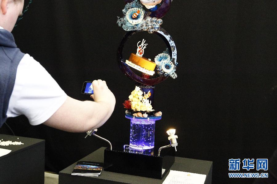 3月5日,一名参观者在荷兰烘焙糕点展上拍摄精美蛋糕造型。