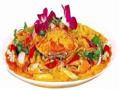 咖喱蟹:主要以咖喱粉调味,拌洋提香,辣度可随口味增多减少,肉蟹味浓郁又香口。