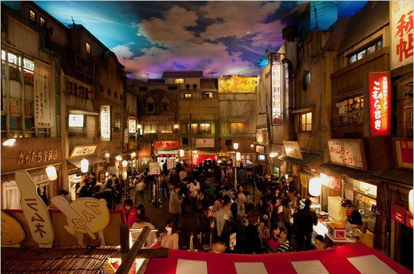 新横滨拉面博物馆是个很大的空地,建筑风格有点像20世纪30年代的市区,这里有很多家非常有名的拉面店的分店。