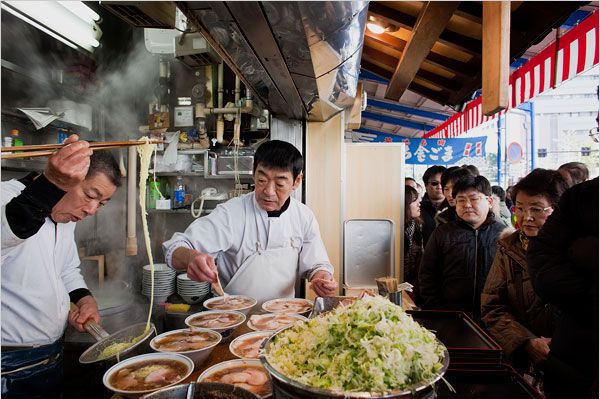 日本人吃拉面的热情场面