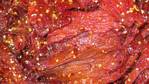 火鞭子牛肉起源于清代乾隆年代,清末民初已成为四川名特产。与张飞牛肉和太和牛肉一起称为“川中牛肉三杰”。以质优味美、片薄如纸、酥香绵长而闻名遐尔。火鞭子是旧时四川自贡地区的照明火把,这里用“灯”的明亮,来表示牛肉的薄而透亮。现在很多商品写作“火边子”,属误字。