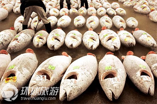 对于东京的寿司店来说,筑地市场的金枪鱼可谓“明星商品”。金枪鱼在这里十分热销,一排排金枪鱼被卖出,另一排排金枪鱼被运来。电动捕鱼网的使用为筑地市场带来越来越多的海鲜,成群的游客和买家蜂拥而至。