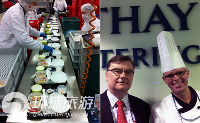 左图为国泰航空饮食服务有限公司的生产线及其工作人员;右图为总经理Charles Grossrieder(左)和主厨Jorg Kubisz(右)。
