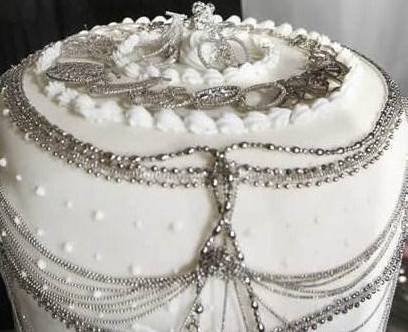 由日本糕点大师Nobue Ikara设计制作的铂金蛋糕“仅仅”价值130,000美金,这一款点心可以说是圆了铂金狂热者的梦。蛋糕体上覆盖的是纯白的糖霜,除此之外的装饰物全部为铂金,包括铂金小链条、铂金项链、铂金别针、铂金垂饰,就连其他的一些小陪衬物都是铂金的,而这些铂金装饰都可能食用的。