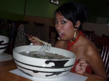 实拍:美国超级加大碗拉面 你能吃光吗?