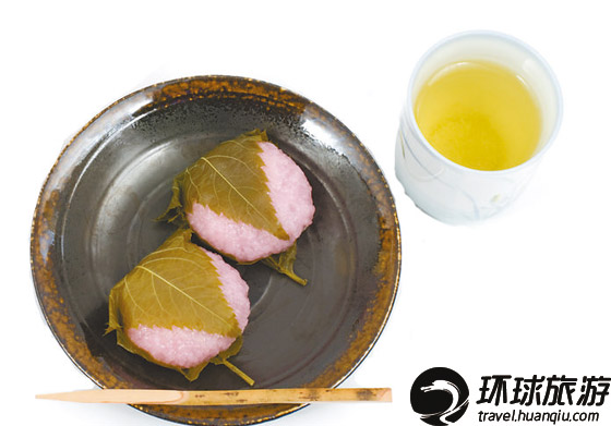 日本时令小吃樱饼和樱花茶