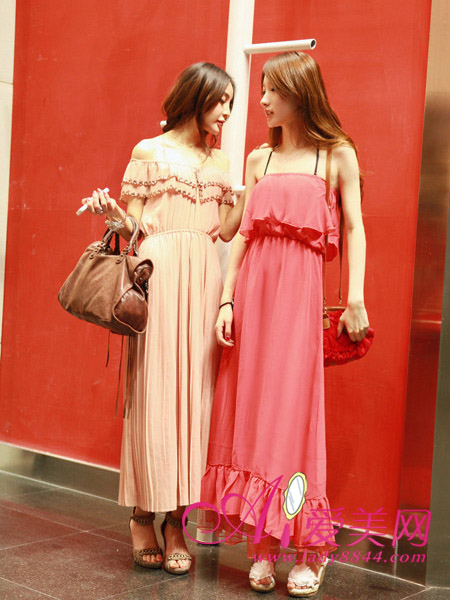 裹胸式或者露肩款的连身长裙,长长的裙摆摇曳飘动,灵气逼人,如果你也超爱长裙,一定要备上一条哦。