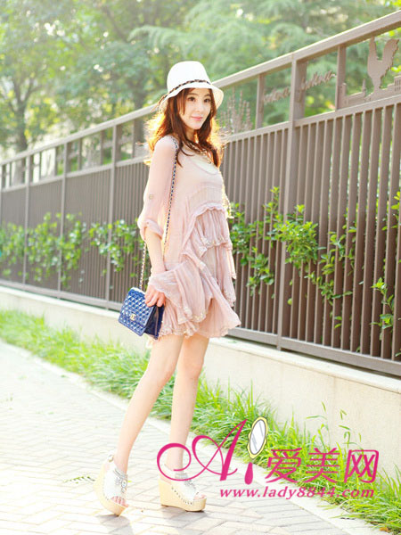 花瓣多层连衣裙搭配破跟鱼嘴凉鞋,超美的。