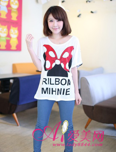 连袖无肩线的款式让肩部显窄,宽松的版型让你轻易一举收服腰身肉肉。胸前的大蝴蝶结图案可爱俏皮,后背拼接黑白条纹更是抢眼百分百哦!