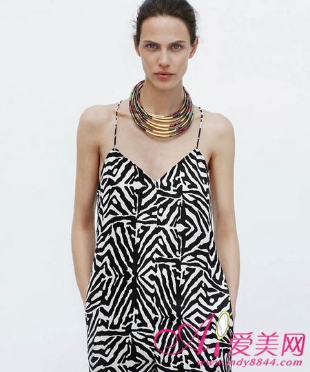 动物纹吊带连衣裙 + 夸张项链圈