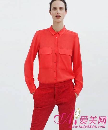 红色衬衫 + 红色紧身裤
