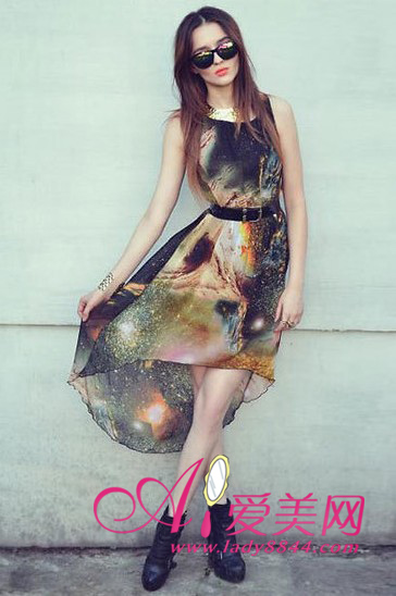 无规则的渲染图案宛若夜空般迷人,前短后长的设计给人一种飘逸感,搭配轻盈的雪纺面料,那股灵动的气息瞬间生成,背心裙款式让你轻松应对高温大热天!