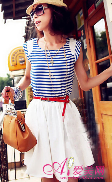 轻柔的雪纺和清爽无比的海军风条纹完美融合,凸显出优雅而美式的海风范!完全是欧洲老电影里女主角的样子,典雅而有范,搭配上小白裙迷人风情四处散发。