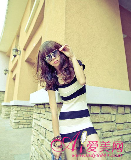 海魂风单品:宽条纹包臀裙