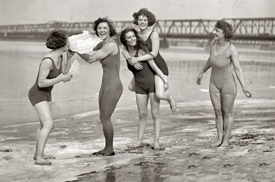1924年仍然有人穿着1909年的连体裤式泳装,很少见的历史图片。