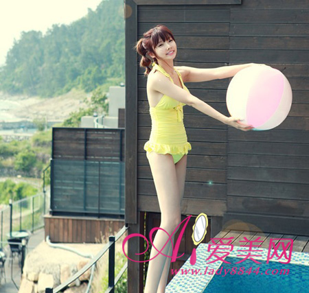 推荐单品:褶皱明亮色泳装,很有少女情怀,娇俏可爱