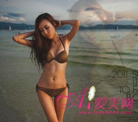 推荐单品:贴身的泳衣设计,香槟色很衬肤色,看上去诱人十足