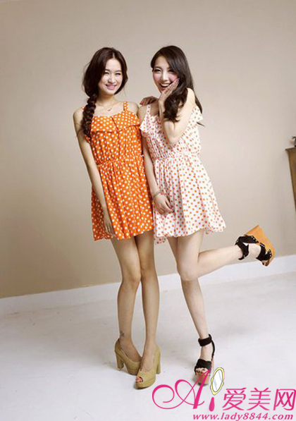 甜美荷叶边复古波点背心裙无袖连衣裙,闷骚亮橘色跟清新白色的组合,很迷人哟!