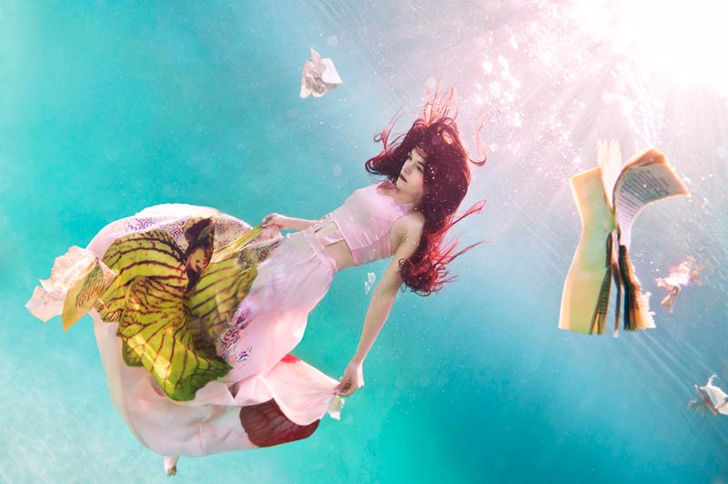 Feline Blush 高级定制系列以“梦幻仙境”为主题拍摄时尚大片,摄影师 Ilse Moore 掌镜。受法国摄影艺术家 Jean Luc Godard 等的启发,设计师 Esin ünlü 以雪纺上的数码印花和绸缎上的蕾丝装饰表达设计理念,Elsa Bleda 在水下呈现另一番美轮美奂的画面,散开的头发、飞扬的裙裾、随水波荡开的缎带都证明 Feline Blush 所象征的女性永远都是那么浪漫优雅。
