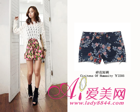 碎花裙的流行也带动了碎花的短裤,其甜美程度却丝毫没有减少。上身搭配蕾丝上衣,田园感十足。或者一件简单衬衣甜美指数即刻暴增!