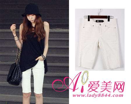 紧身的设计更能秀身材,五分裤的款式让小腿看上去更加纤细修长,搭配娃娃装黑色背心,简洁的搭配,倒也不失时尚的味道哦!