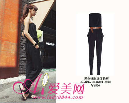 黑色的抹胸连体长裤不仅可以衬出白皙的好肤色,而且还同时可以秀出好身材,尽显曼妙曲线。