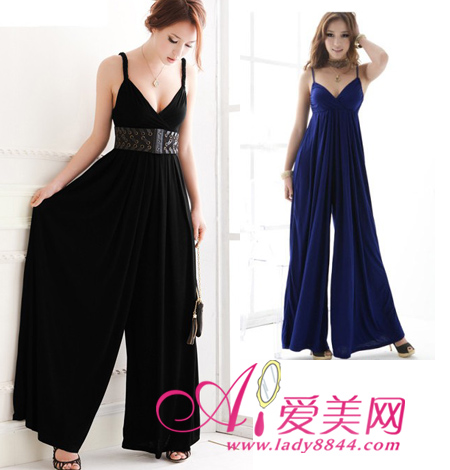 V领吊带的设计凸显女生的性感风韵,下半身呈阔腿裤的设计时尚加分,在腰间系上一条宽腰封,完美分割身材比例。