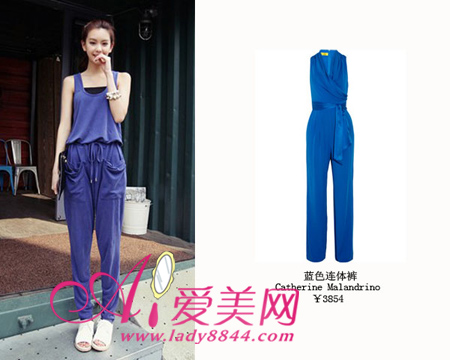 蓝色的连体长裤有海军的感觉,不禁让人联想到冰凉舒爽的海水浸透全身,充满凉爽感觉的蓝色连体裤一定是夏天的必备。