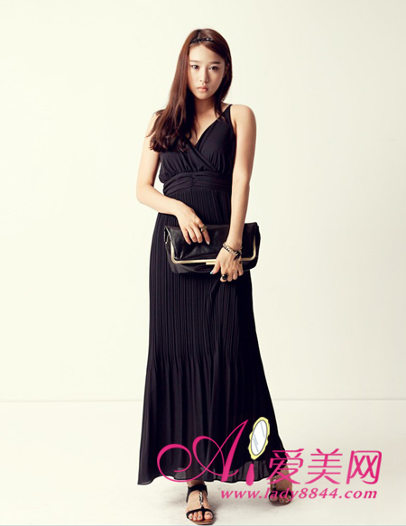 清新搭配tips:V领连身长裙,性感妩媚直击你心