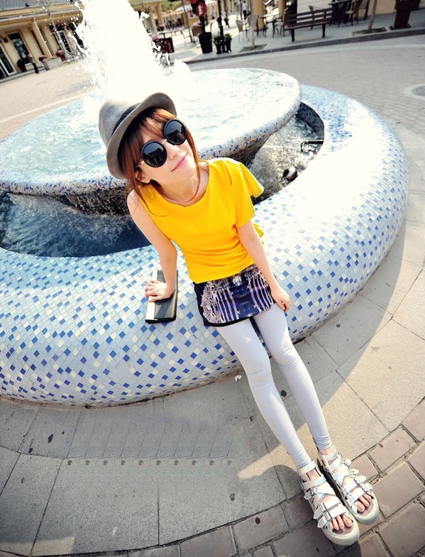 潮流前线的创意T恤,无论什么样的风格路线她都可以搭配的呢!所以不要有后顾之忧!单穿或者内搭都是可以给你惊喜的单品!下身可搭配一条风格类似的A字裙,又或者搭配上一款经典的牛仔裤+潮色尖头的系带平底鞋就十足的有魅力~天气微凉的时候,外搭上一款西服会变得更有时尚感可以搭配的呢。