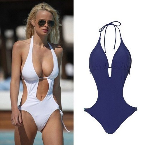 这款藏蓝色连体比基尼,令女士们尽现婀娜多姿的优雅身段。