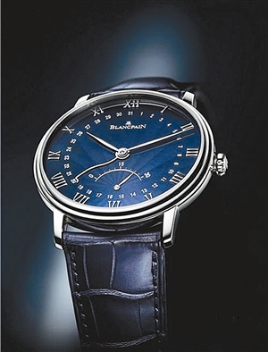 宝珀这款表的蓝宝石水晶底盖搭载超薄自动机芯