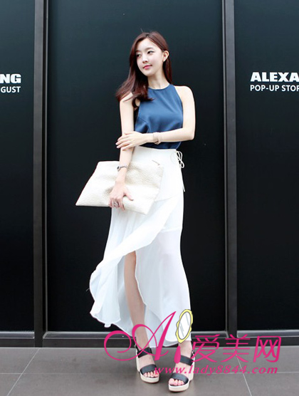 显高诀窍:背心+开叉长裙,高腰设计拉长身材比例