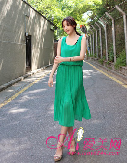 显高诀窍:收腰背心裙子,一抹绿色快速出境来