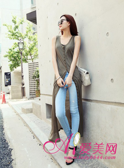 搭配tips:长款马甲+牛仔裤,时髦又个性