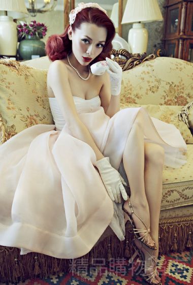 20世纪初舞蹁跹的绝代名媛,从复古的梦中苏醒,那种气质是奔放中慑人的皎洁混合着低眉颔首处的一抹娇羞,时尚梦寻定格在阳光下这朱丹微启的侧脸,50年代束胸、中世纪家具、中东地毯……能把典雅与复古诠释得如此精准,没有点底蕴与艺术智商必显肤浅。镜头被她笼罩上一层油画质地的奢靡,无论公主般白纱荷叶裙,抑或性感的深V紫红色裹身裙……都被她驾驭得优雅熨帖,把你有关复古的梦幻化成真,这慑人的艳丽风景,无处不是翩若惊鸿,似梦非梦花照影!