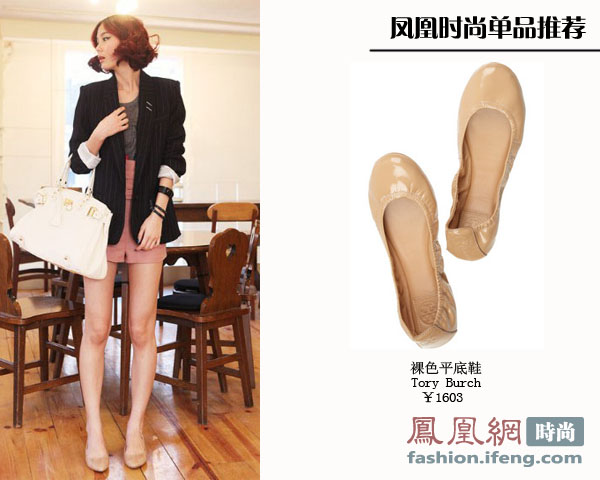 OL为了便于行动,除了高跟鞋,平底鞋也是工作生活中的必备良品,选择裸色平底鞋既好搭衣服又不会太呆板。