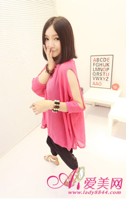 请朋友来家里做客,不想穿的太轰趴,也不想穿的太FORMAL?选一件看起来热情不已的玫红色BF风镂空针织宽松长衫吧!露肩设计潮流感UP UP~中袖长度在空调房里面也不会怕冷,免去了穿防晒衫盖空调被的烦扰。下着秉承舒适为主的理念,配搭一条黑色哈伦裤,皓腕处佩戴欧美味十足的铆钉手环。接下来享受与闺蜜们度过的快乐时光就好啦!