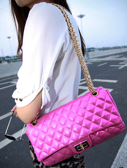 平时工作日上班总是穿着千篇一律的职业SUIT,再怎样设计特别的衣着依旧还是西装套裙而已。沉闷的外表下如何小小解放不甘于平庸的心?背一个像这样亮眼的玫红色包包吧。怕太招摇会过于OVER?菱格车缝线元素不正是优雅的代名词——CHANEL最经典的证明吗?金属质地链条提升了包包的档次感。担心颜色太跳?要的就是这种效果。不在颜色上出位,就在沉默中灭亡!
