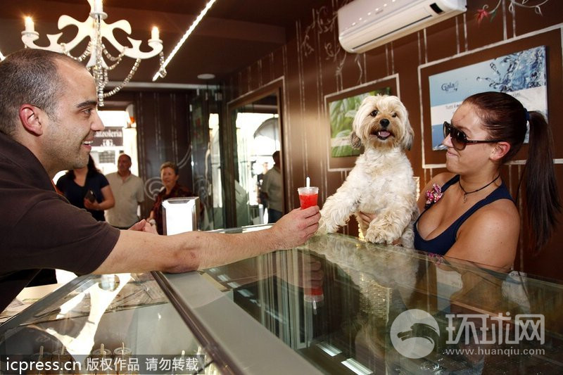 当地时间2012年7月4日报道,炎炎夏日来临,意大利的一家冰淇淋连锁店打起了狗狗的主意,特意推出有趣的宠物冰淇淋,所现做现卖的冰淇淋都是专门为狗狗们量身定做的!