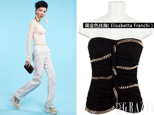 左图搭配:裸色垂帘耳环(Muara)RMB199、镂空上衣和白色背心(Penny Black)RMB1,580、粉红色紧身胸衣(H&M)RMB499、棉麻长裤(Maxmara)RMB5,080、花朵形状戒指(Muara)、琥珀质地手包(Miss sixty)RMB980、白色坡跟鞋(Maxmara)RMB7,480(完)