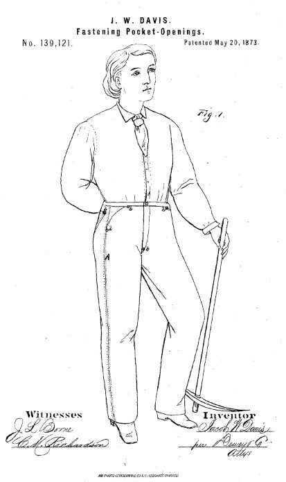 1853年的淘金时期,24岁的Levi Strauss从纽约搬迁到旧金山,他成功地在加利福尼亚创立了家族企业,进口服装,布料和其他干货等。而他拥有一名忠实客户Jacob Davis,想出了可以用铆钉等配件来加强牛仔布料地强韧度,由于他自己缺少资金,于是就邀请Levi Strauss一起合作,之后他们就生产出第一条牛仔裤。