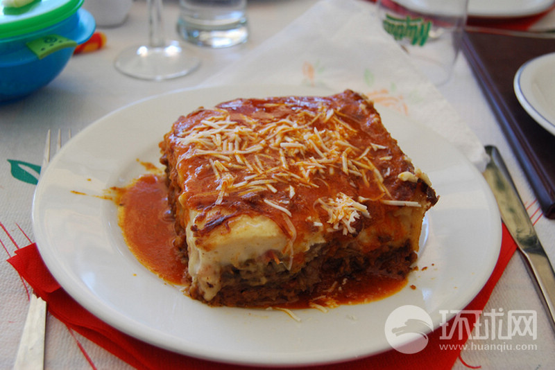 木莎卡是希腊的传统美食,是一道游希时腊必点的佳肴,据说很少有人能抵御它的美味。希腊人适应了意大利千层面,所以,在制作木莎卡时,人们用奶酪酱汁将各种原料混合在一起,烘烤至奶油融化,两面金黄。传统的木莎卡的主要原料是茄子,通常配上牛肉粒或羊肉粒,而有些地区也会使用另外的蔬菜,如洋蓟或土豆。肉粒和洋葱、大葱、西红柿和调味料一起炖制,并同腌制好的茄子条一起叠置之后进行烘烤。无论你身居何地,这道传统的菜肴定能在寒冷的冬日给你带去温暖。