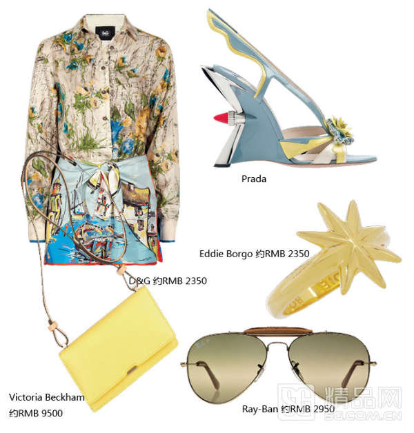 绚烂的印花不需要过于抢戏的繁复配饰,轻盈的颜色更能与造型融合。长带小包适合于通勤,换一个大容量草编包就能尽享度假感觉。颜色清新也可以很抢眼,拼接的印花契合今年流行重点!