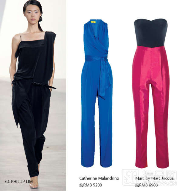 优雅的丝光、精致的缎面让单品的奢华度与女人的气质同时加分,这样的连体裤在派对季中给你提供更妙的选择,能在一水儿各种裙中杀出条血路! Catherine Malandrino 的蓝色束腰款与Azzaro 的镶嵌宝石款无疑是抢镜的晚装佳品,Bottega Veneta也可以身着去通勤,日夜都合适。